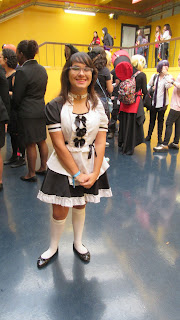 Entretanto achei a Ana-san, que estava na organização para dar um workshop de Japonês e para avaliar o concurso de Maids. Que, aparentemente, tinha apenas uma participante, mas conseguiram arrepanhar mais meninas algures. Ainda as vi numa luta intensa com um pacote de ketchup, num simulacro de omurice (que já fizemos em casa e é delicioso, diga-se de passagem). Como isso me deu uma fome medonha, fui almoçar a um restaurante próximo, já que conheço todos os da zona. Infelizmente aquele onde queria ir estava fechado, o que me deu grande pena: é um restaurante mesmo bom. Se forem da área ou estudarem naquela escola, vão lá: é "O Cantinho da Mafalda" e tem um menu bem barato e delicioso, sempre com comidas diferentes! :)