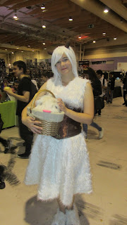 Depois da experiência do ano passado, sabia que não queria comer lá, portanto preparei-me no meu cubículo e só cheguei lá pelas treze horas e vinte minutos, depois de uma luta para estacionar no parque da estação do oriente. Tinha informações de que deveria lá estar antes das duas horas, para confirmar a minha inscrição. Na verdade, estas informações para os cosplayers dos concursos foram muito assertivas e a comunicação com a organização não foi nada menos que perfeita. Por exemplo, eu tive um problema o link que mandei para o download do material para o meu skit (o link reencaminhava para um vírus maléfico) e graças à disponibilidade da organização conseguiu resolver-se tudo a tempo e horas :) Mas... Cheguei lá, pedi a minha entrada (sem filas, sem complicações), entrei... E que é da banca SOS Cosplay? Andei por todo o evento, tropeçando em milhares de centenas de pessoas, até que o pessoal amigo da banca do Stempunk me deu a localização.