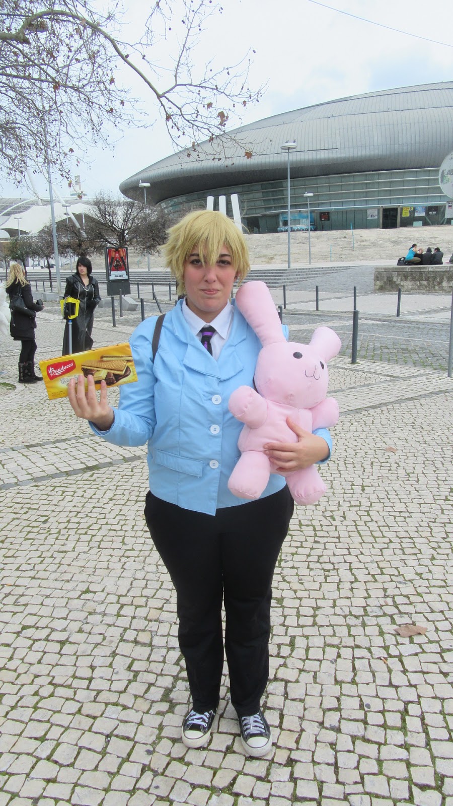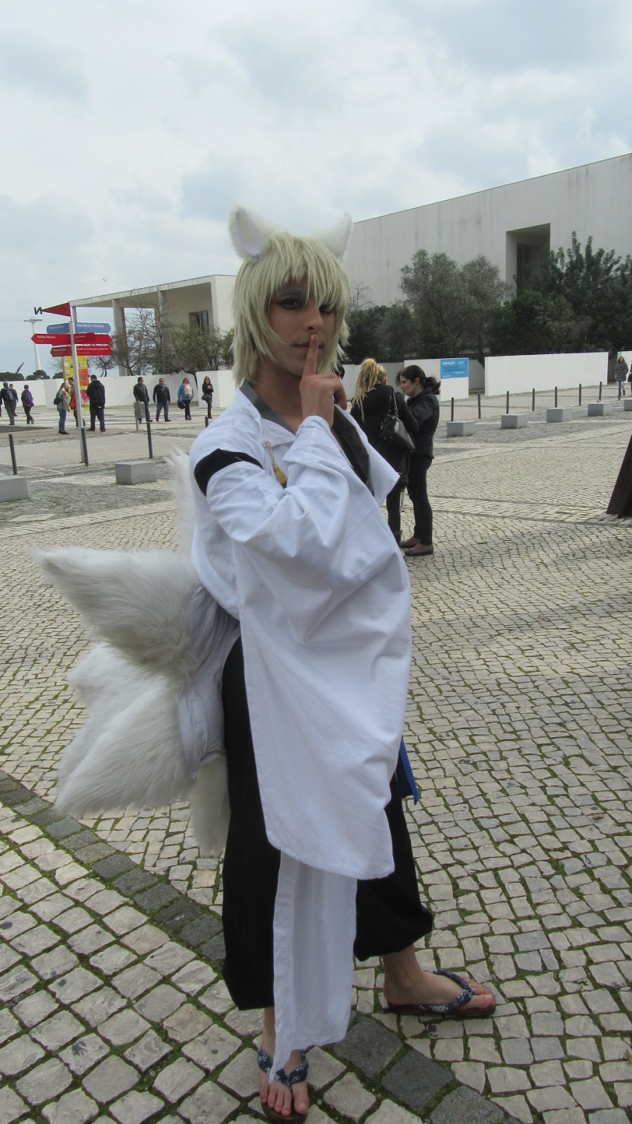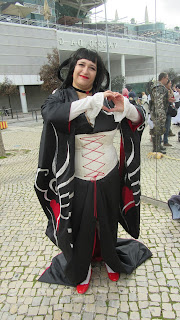 Na rua, já grande multidão se ajuntava. E eu olhava para toda a gente e cada vez mais me sentia feliz dentro do meu fatóide: foi o fato mais quente que alguma vez concebi! A personagem era a Maetel, de Galaxy Express 999, apenas mais uma viajante do comboio do espaço. Poderão conhecer mais sobre este fato no meu post do blog sobre cosplay, mas também na minha novíssima página do Facebook, que está urgentemente necessitada de mais laikes para eu me sentir famosíssima. =D
