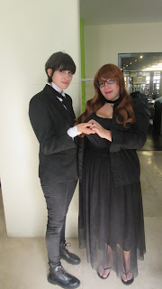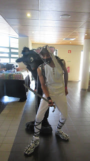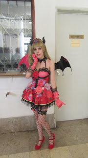 A toda a pressa, dirijo-me para o evento. E a recepção não me agrada, de todo. Para começar, anuncio-me como participante do concurso de cosplay, que é o que, naturalmente, faço sempre que participo. Ao que um grupo de voluntários, ligeiramente enojado por uma cota horrorosa ter interrompido sua mui importante conversa, me responde que tenho de pagar bilhete. Respondo que sei e que são dois. Ao que ficam a olhar para mim como se eu tivesse sido "sei, são mil e quinhentos". Mas lá se resolveu.