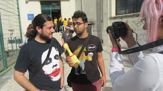 Quanto aos skits, uma organização fluída e célere (menos célere porque, por mea culpa, tinha deixado o cenário dentro da "gaiola") permitiu que tudo corresse dentro dos eixos e com toda a rapidez. Assisti aos skits quase todos, sendo que o meu preferido foi sem dúvida o da mocita que estava vestida de homenzarrão. O Qui gravou dois deles, aos quais poderão assistir em breve no meu muito renovado Canal de Youtube.